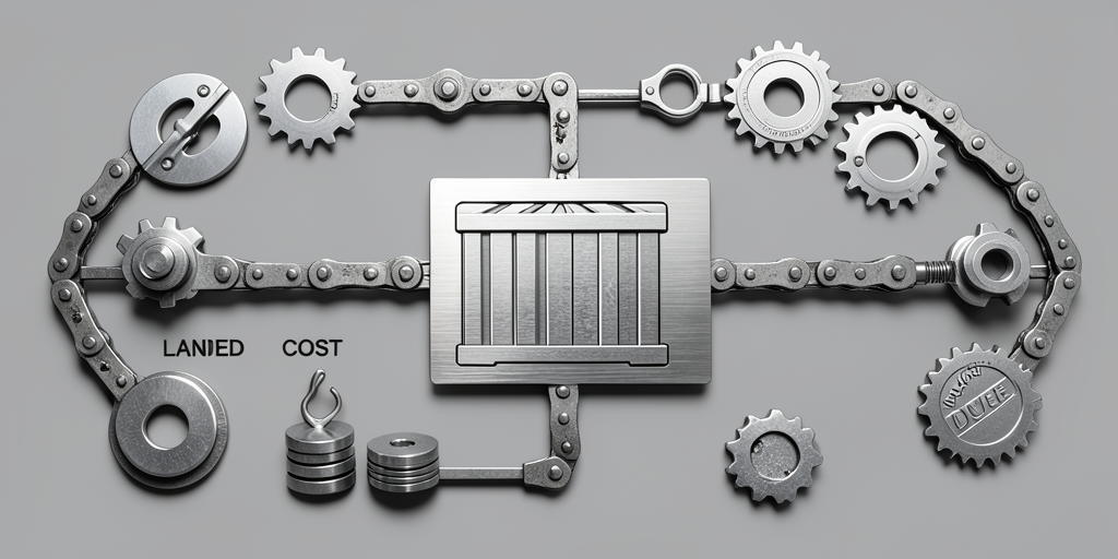 עלות ייצור, עלות משלוח, מכס יבוא, CIF, FOB, עלות כוללת, DDP, עלות בסיסית, ביטוח סחורה, עמלות נמל, סגסוגת פלדה, מחיר ספוט
