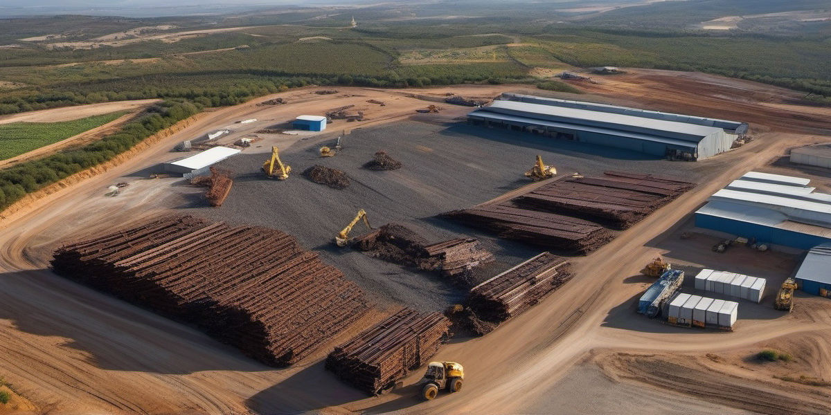 מרכז קנייה ומחזור ברזל ופסולת מתכת בטירת צפון ישראל: מגרש תעשייתי מסודר לאיסוף ומיון פסולת ברזל, מנופים כבדים, משאיות איסוף, עובדים עם ציוד בטיחות, מחזור ברזל מקצועי בשירות טירת כרמל וצפון הארץ